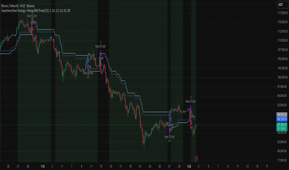 Supertrend Dual Strategy + Rising ADX