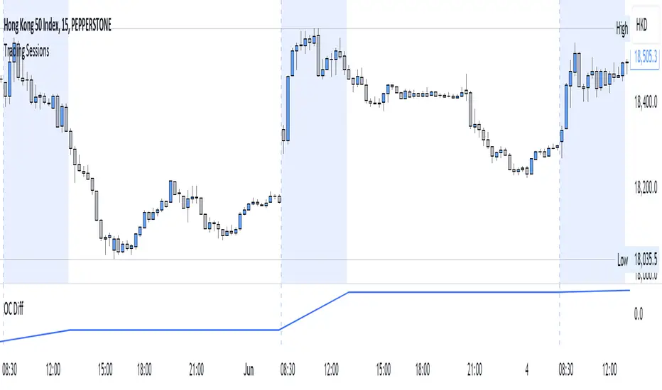 the difference of price will be shown on the indicator window one candle after the closing time (opening at such time)