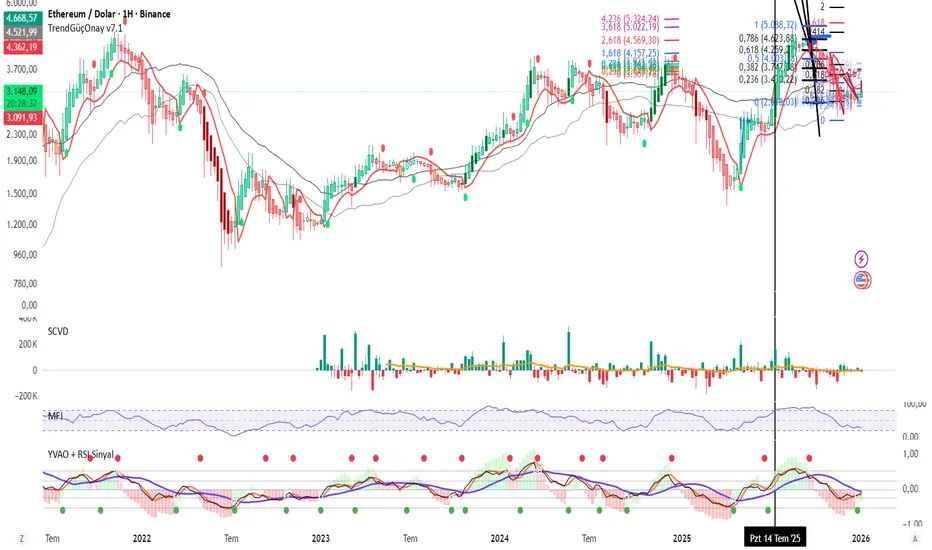 yeşil ve kırmızı mumlar ile voltide ölçülür. Ayrıca rsi ile desteklenmiştir