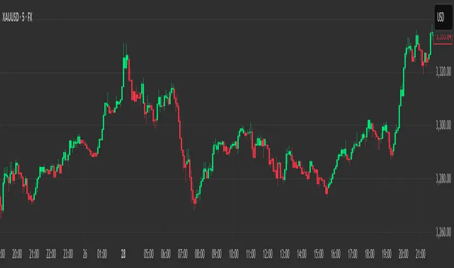 Heikin Ashi color logic filters out noise and helps provide a clearer view of the current trend direction. Since we are still plotting real OHLC candles, we do not lose important price information such as actual highs, lows, or closing prices. This method offers a hybrid view that combines the accuracy of real price levels with the visual benefits of Heikin Ashi trend coloring. It also helps maintain visual consistency for traders who are used to Heikin Ashi signals but want to see real price action.