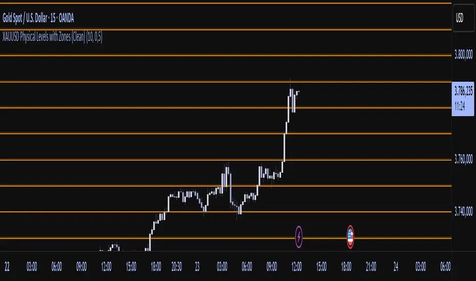 🔧 Update: Improved Level Alignment LogicWe've fine-tuned the logic for how horizontal levels are positioned on the Physical Levels in XAUUSD indicator to ensure greater price precision and consistency.