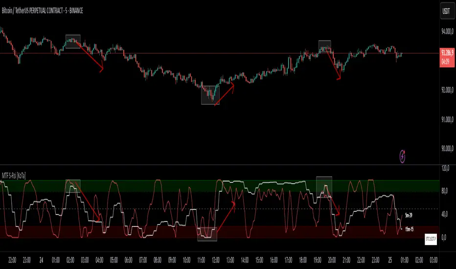 MTF S-rsi indikatörü çok zaman dilimli stokastik rsi'ın "k" değerini gösterir.