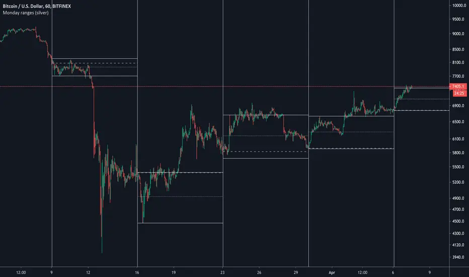 This script displays the monday range (high, low, mid and Open) for the past 5 weeks.