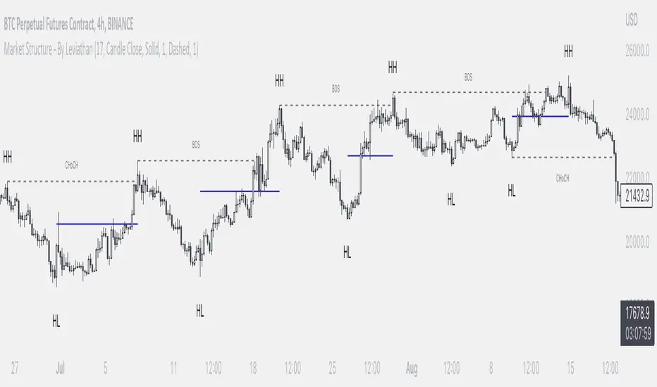 This indicator helps you identify market structure by plotting swing highs and lows (HH, LH, HL, LL), BOS/CHOCH and 0.5 retracement levels. Other functionalities will be added in future updates.