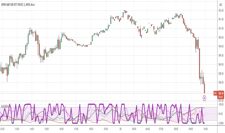 This indicator combines two separate Simple RSI indicators so you can show different periods together, as well as an ADX indicator with DI+ and DI-. I prefer to use one indicator to show the whole thing, instead of stacking the individual indicators.