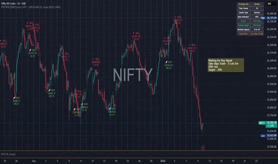 **PSP ROC ZERO Line 1 HTF** is a clean, rule-based **trend & momentum confirmation indicator** designed for **high-probability positional and intraday trades** with limited signals and clear direction.