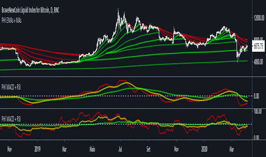 PhiCube calibrated 3-line MACD with candle coloring function at intersections! NOTE: Interesting to use in conjunction with PHI EMAs + MAs.