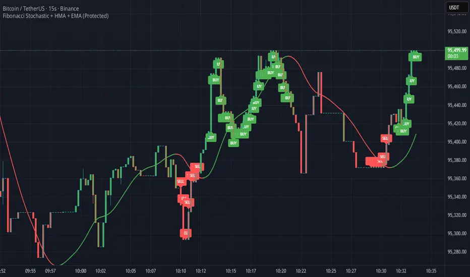 Uses EMA values from a smaller timeframe (e.g., 1 minute).