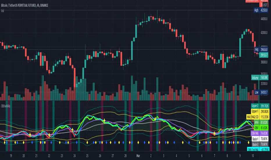 I just added the 2 different Bollinger Bands and 2 different moving averages to the OBV version of LazyBear.