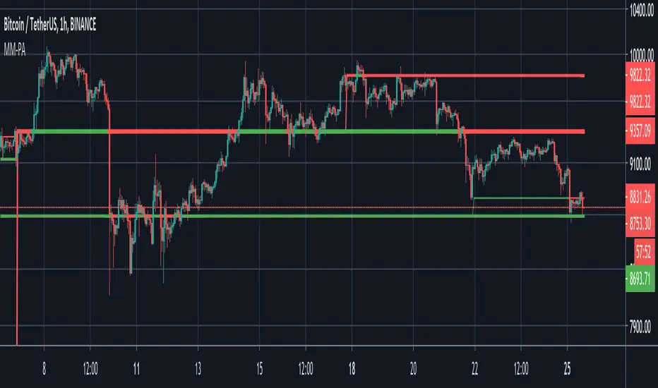 8693.71 support line drawn since May 4 hold the bitcoin. Also, I added params to change values. Comparison length is very important. I defined default value to 233. Once indicator find new support or resistance, it check last 233 bars to identify how many bars reacted to new support or resistance. Also, it's determine reaction by using precision value.