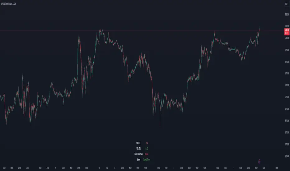 Dashboard Display: The script creates a table on the chart that dynamically updates with the VIX ROC, ATR, trend direction, and speed.