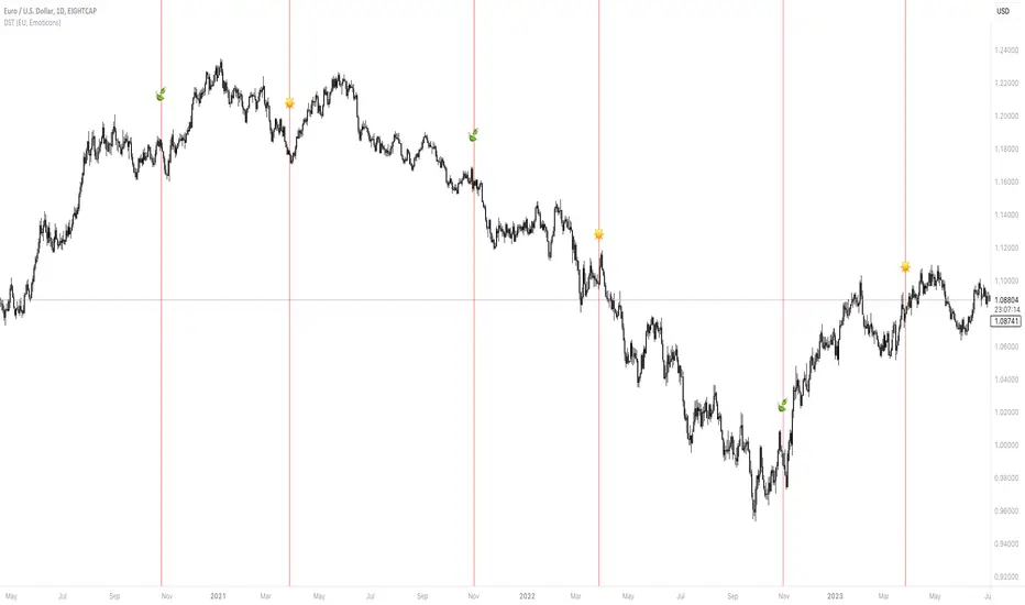 Designed to streamline your trading experience, this indicator automatically detects and highlights the exact moments when daylight saving time shifts occur, ensuring you stay on top of time changes without the hassle.