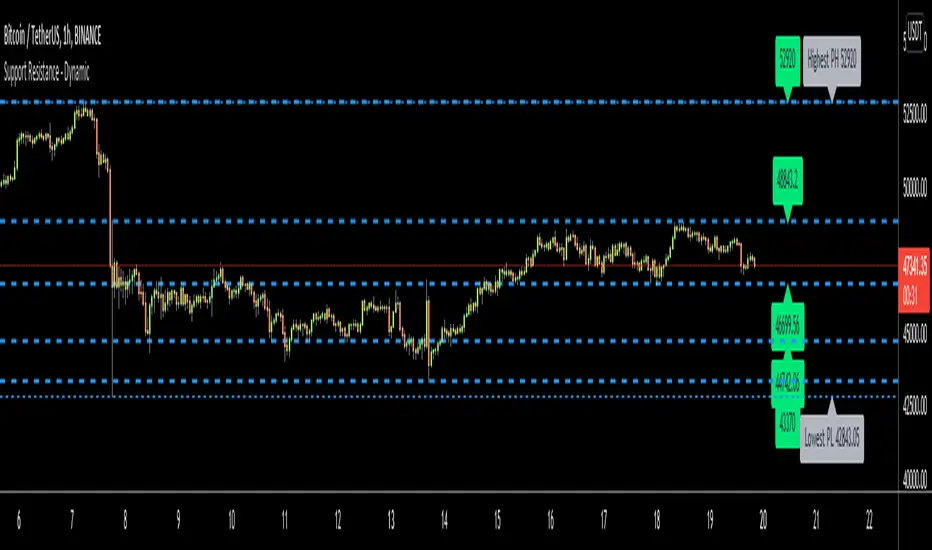 Number of Support/Resistance line is Dynamic and up to 20 lines, that means number of lines changes dynamically. you can see how the script puts Suppport/Resistance lines dynamically by "Replay" button. (if I have time I will try to put a video)