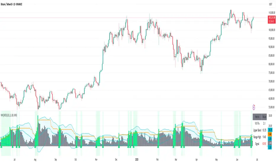 - VIX Fix exceeds upper Bollinger Band (2 standard deviations above 20-period MA)