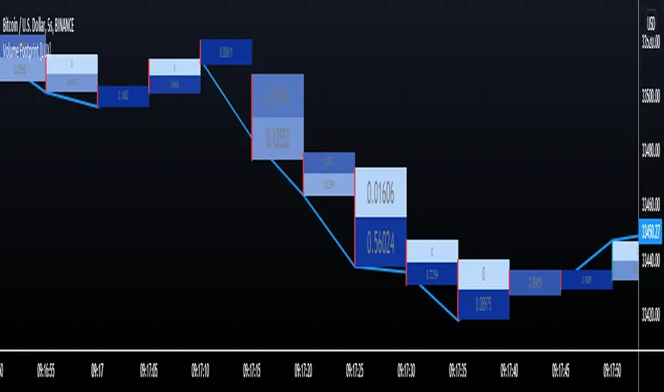 This indicator estimates a volume footprint using tick data. The script automatically separates a candle into equidistant intervals with a width obtained from the average true range or a user-given width.
