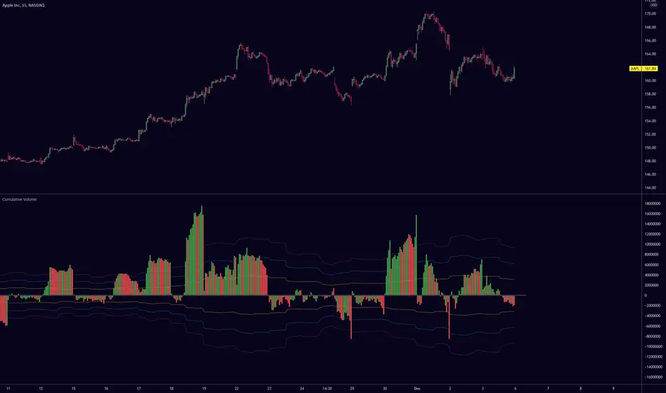 Cumulative Volume oscillator with Bollinger bands. Resets with each new day. Based on cumulative tick.