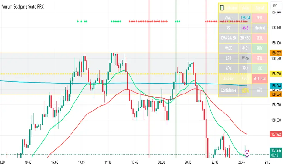 This indicator is a practical scalping decision tool that shows whether BUY, SELL, or WAIT is currently favorable.