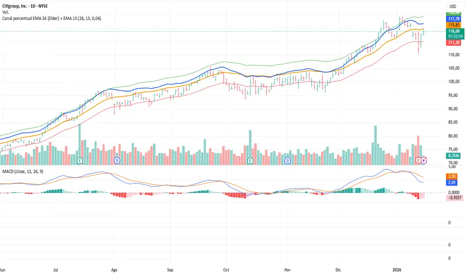 Canal porcentual EMA 26 (Elder) + EMA 13