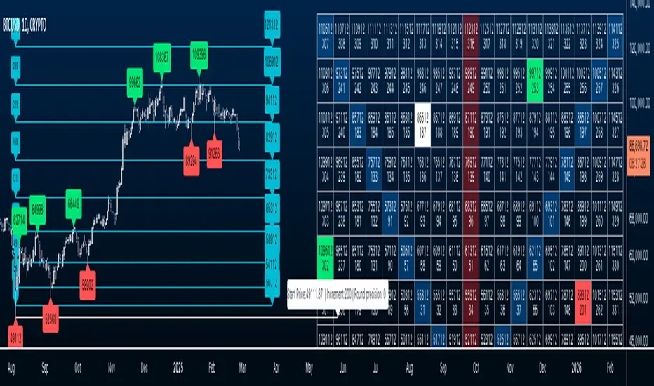 This indicator is inspired by the methodologies detailed by Patrick Mikula in his book "The Definitive Guide to Forecasting using W.D Gann's Square of Nine." I recommend checking it out. He also mentions another use case as a Price and Time chart in his "Gann Scientific Method Unveiled, Volume 2." FYI, I am not affiliated with Patrick Mikula in any way.