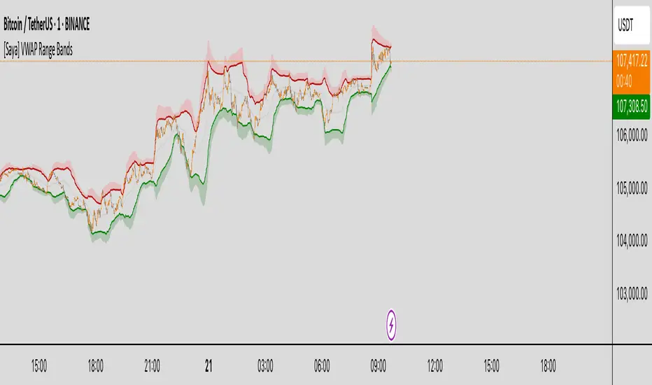 [Saya] VWAP Range Bands is a custom volatility-based indicator that visualizes dynamic support and resistance zones using a volume-weighted average price (VWAP) combined with adaptive deviation bands.🔍 Features:
