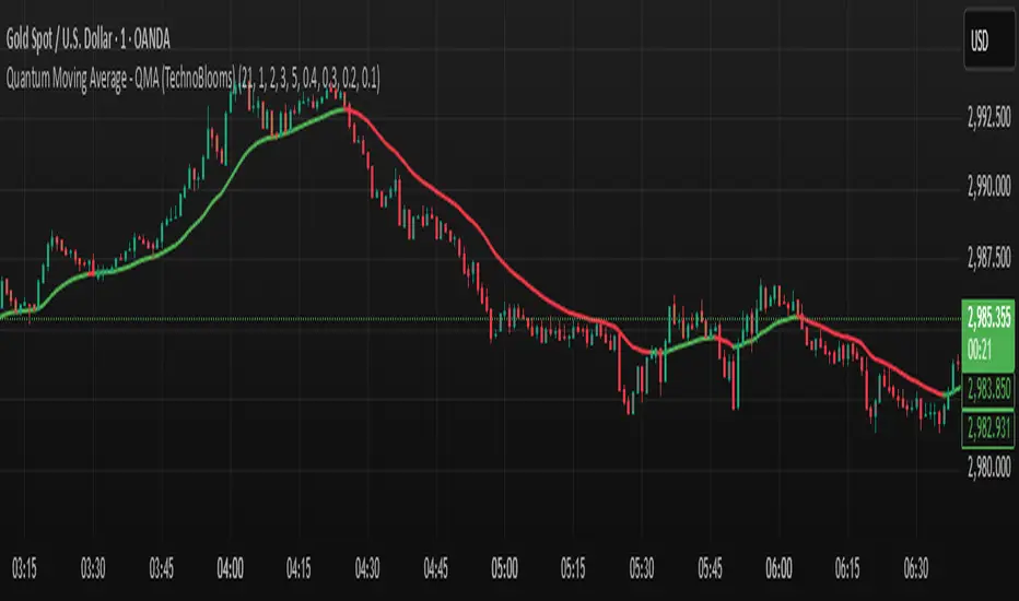 Unlike fixed weight Moving Averages, QMA assigns adaptive weightage to the selected timeframes, enhancing its responsiveness.
