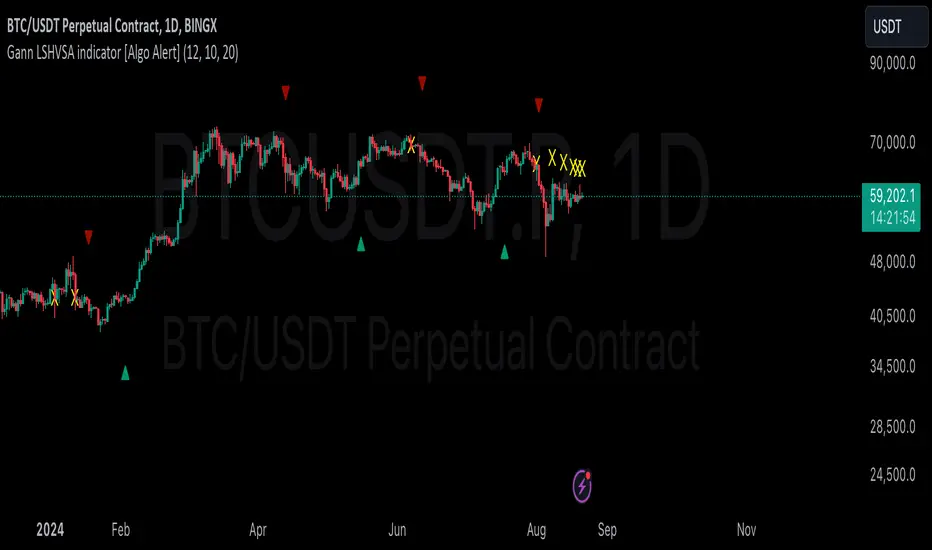 The core functionality of the GannLSHVSA revolves around the innovative combination of volume change analysis, spread determination (calculated from the open and close price difference), and the strategic use of the EMA (default 10) to fine-tune the analysis of spread by incorporating volume changes.