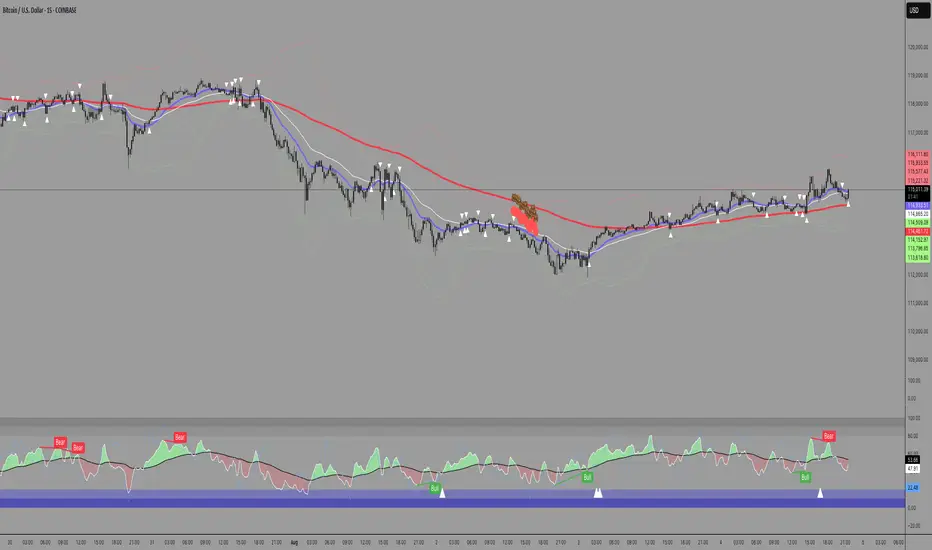 This combination of signals, visual elements, and trend filtering provides traders with a systematic approach to identifying price deviations and taking advantage of market corrections.