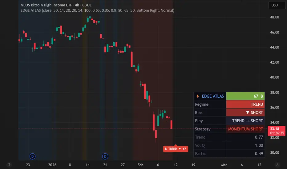 The transparency tier is what makes EDGE ATLAS a learning tool, not a black box. When the score drops from B to D, you can immediately see which dimension degraded. Did the trend weaken? Did volume dry up? Did volatility spike to abnormal levels? This feedback loop teaches you to read market structure over time, not just follow a number.