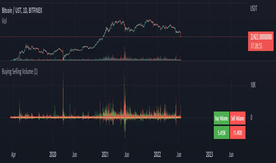 Builds on Ceyhun's "Buying Selling Volume" indicator. This version allows users to define periods by effortlessly dragging two points or you may define periods by manually entering the start and end times in the settings window. Once the period is defined, both buying and selling volume will be totaled thus displaying the amount of buys and sells in that period.