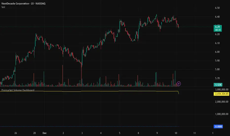 This script provides a clean and practical overview of premarket cumulative volume compared with regular session volume, helping traders instantly identify unusual early-session liquidity.