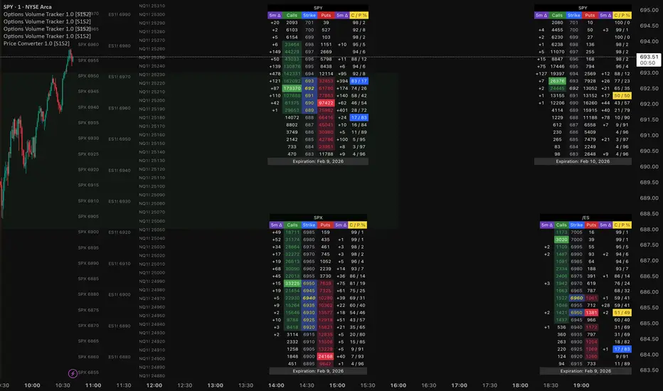 Thanks to these features, you can place multiple copies of Options Volume Tracker on the chart and track 0DTE, 1DTE, 2DTE side by side, or keep an eye on multiple instruments at the same time for confluence.