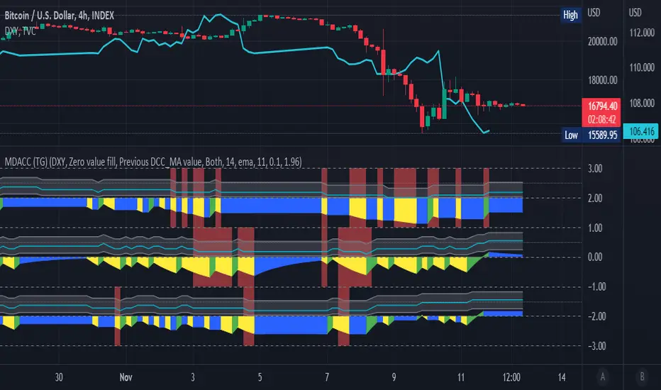 Here is an example of how to read this indicator:This shows the 4H price action of BTCUSD during the first two weeks of November 2022, when the FTX insolvency caused crash happened, which was the 2nd biggest crypto exchange at the time, just after Binance. This was followed two days after by an impressive relief pump following favorable CPI readings.