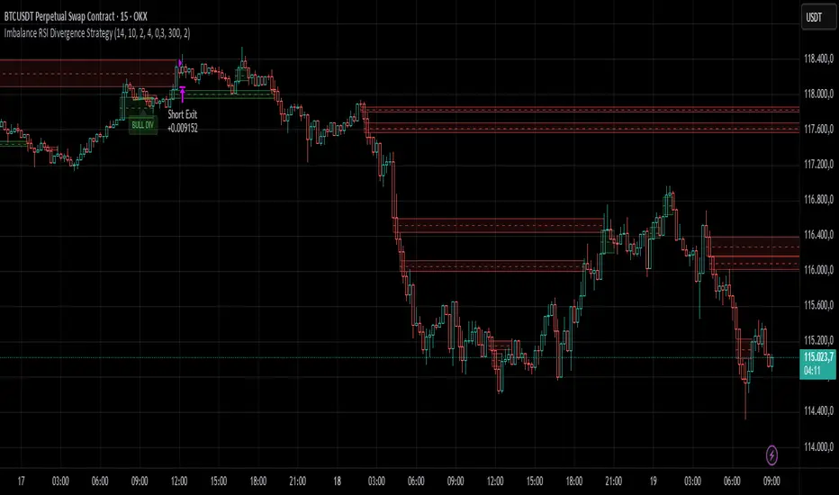This strategy identifies **imbalance** zones in the market and combines them with **RSI divergence** to generate trading signals. It aims to capitalize on price gaps left by institutional investors and large volume movements.