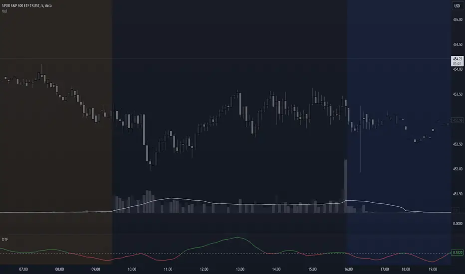 DTF combines the Moving Average Convergence Divergence (MACD) and Relative Strength Index (RSI) indicators, normalizing them to a similar scale for a comprehensive view of market conditions. It then calculates a combined value and smoothes it using a moving average.