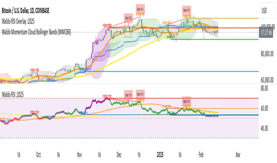 The Waldo RSI :o indicator is designed to complement the "Waldo RSI Overlay :o" by providing an RSI-based analysis on TradingView, focusing on macro shifts in market trends. Here's a comprehensive guide on how to use this indicator: