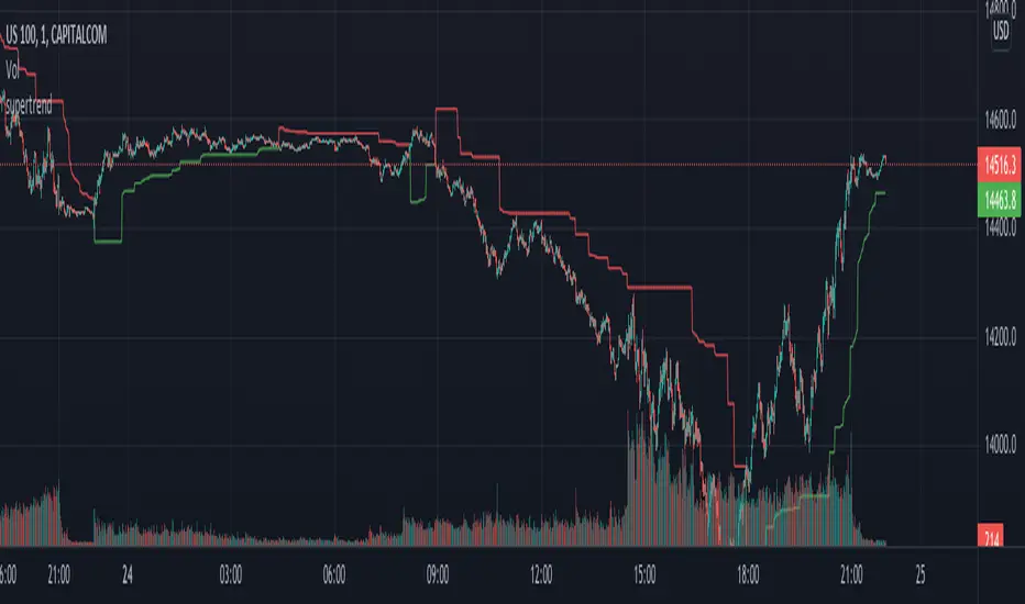 supertrend_bands(bandType, maType, length, multiplier, source, highSource, lowSource, waitForClose, useTrueRange, useAlternateSource, alternateSource, sticky) supertrend_bands: Simple supertrend based on atr but also takes into consideration of custom MA Type, sources