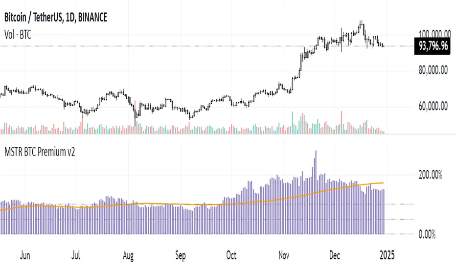 The premium indicator can serve Bitcoin investors as a proxy for gauging overall market demand. A high premium indicates strong demand for Bitcoin exposure through MSTR, reflecting broader market enthusiasm for Bitcoin. A low premium suggests reduced demand.