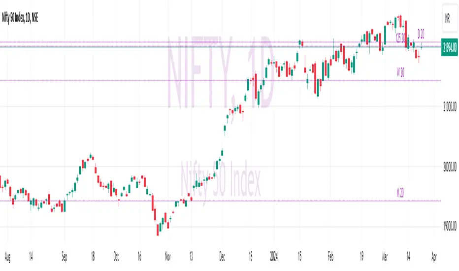 The "EMA20 in MTF" indicator on TradingView is a versatile tool designed to display the 20-period Exponential Moving Average (EMA) as a horizontal line across various time frames. This indicator provides traders with a comprehensive view of the EMA's behavior by plotting it on multiple time frames (MTF), including Quarterly, Monthly, Weekly, Daily, and 125 Minutes.