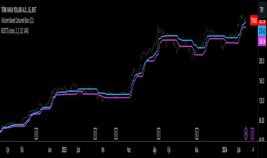 Bollinger OTT Spread (BOOTS) is a development combining Bollinger Bands with Optimized Trend Tracker (OTT) Indicator by Anıl Özekşi.