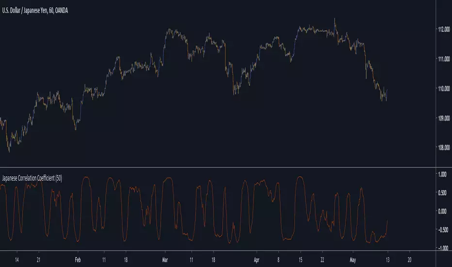 Since we use information provided by candlesticks (close/high/low) i have been asked to publish this estimator with the name Japanese correlation coefficient, this name don't imply the use of data from Japanese markets, "Japanese" is used because of the candlestick method coming from Japan.