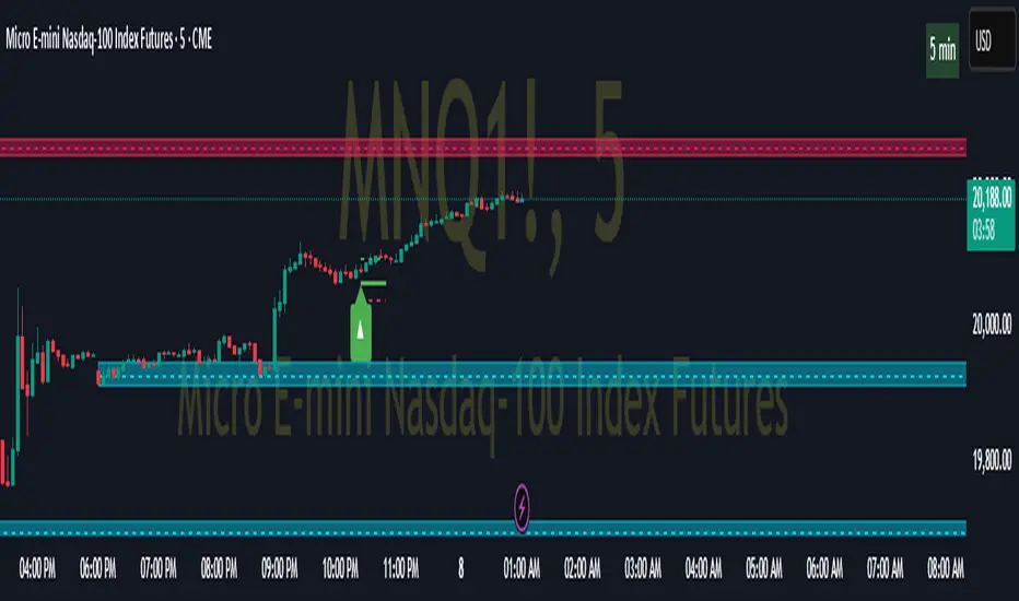 The Pivot ATR Zones indicator plots dynamic support and resistance zones based on pivot highs and lows, combined with ATR (Average True Range) volatility levels. It helps traders visually identify potential long and short trade areas, along with realistic target and stop loss zones based on market conditions.