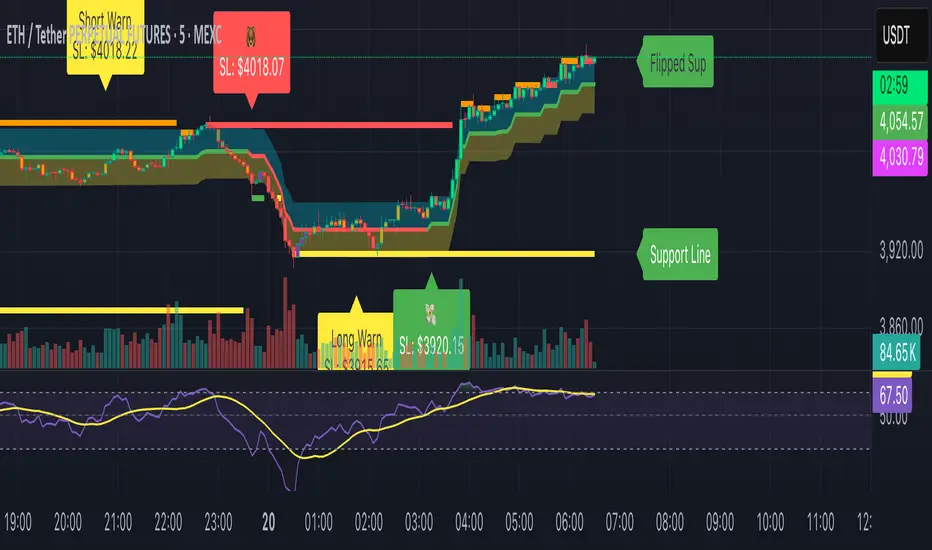 Warning Alerts ⚠️: Spots potential failed bounces (e.g., "Short Warn" or "Long Warn") to avoid traps – ideal for risk management!