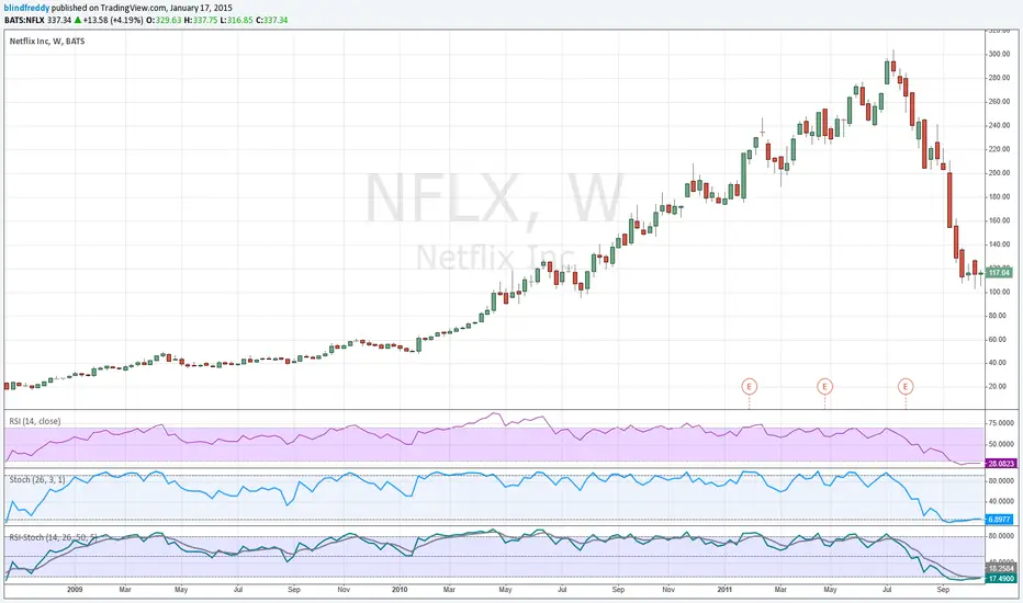 This is a very simple idea - an average of RSI and the Stochastic Oscillator. However it offers plenty of flexibility for tuning to your requirements. You can change the lengths of either indicator and the weighting of each. By default it's set to 50/50 (just change the percent RSI to adjust). There is also an optional EMA which can be used as a signal line.