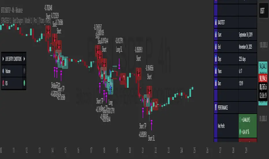 Even though it is based on professional quantitative engineering, Red Dragon Model 1 remains extremely simple to operate. All logic is clearly displayed and fully accessible within TradingView itself, making it easy to understand for both beginners and experienced traders. The structure is organized so that any user can quickly view entry conditions, exit criteria, additional filters, adjustable parameters, and the full mechanics behind the strategy’s behavior.