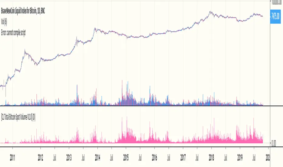 Total bitcoin volume across all trading pairs, includes historical data too such as mtgox and btcchina as well as almost all pairs on newly sprung up exchanges.