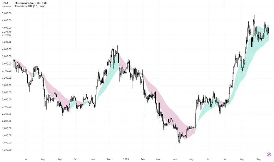 Use the Trendstone No-Trade Zone as a gatekeeper: whenever price is inside or even kissing the shaded ribbon, you stand down, no new entries. Treat a clean close outside the ribbon as "conditions are acceptable", not as a signal.Your own setup still decides entries and exits. If you want the zone to react faster to shifts, lower the Multiplier; if you want it steadier and harder to penetrate, raise the Multiplier.