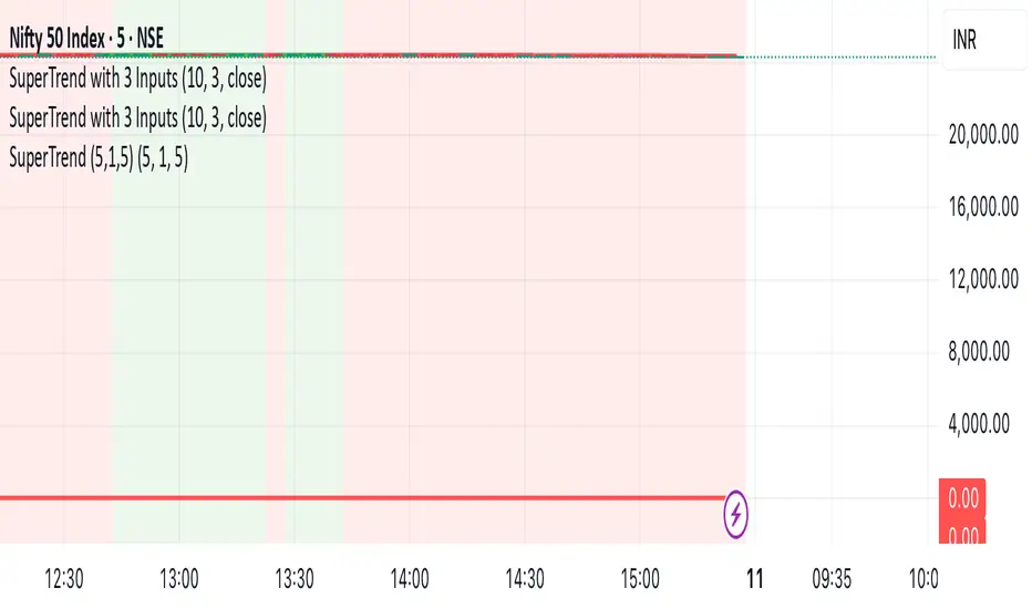 Short-term Supertrend (7, 1, 3) → reacts quickly, catches early trend changes but can give more false signals.