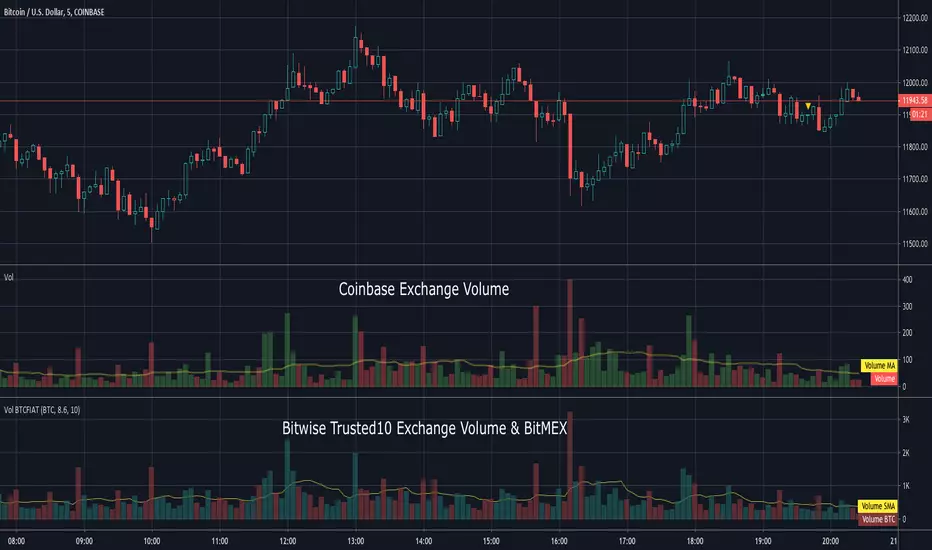 This indicator shows the aggregated volume of BTCFIAT of the Bitwise "Trusted 10" Exchanges that are available on TradingView.