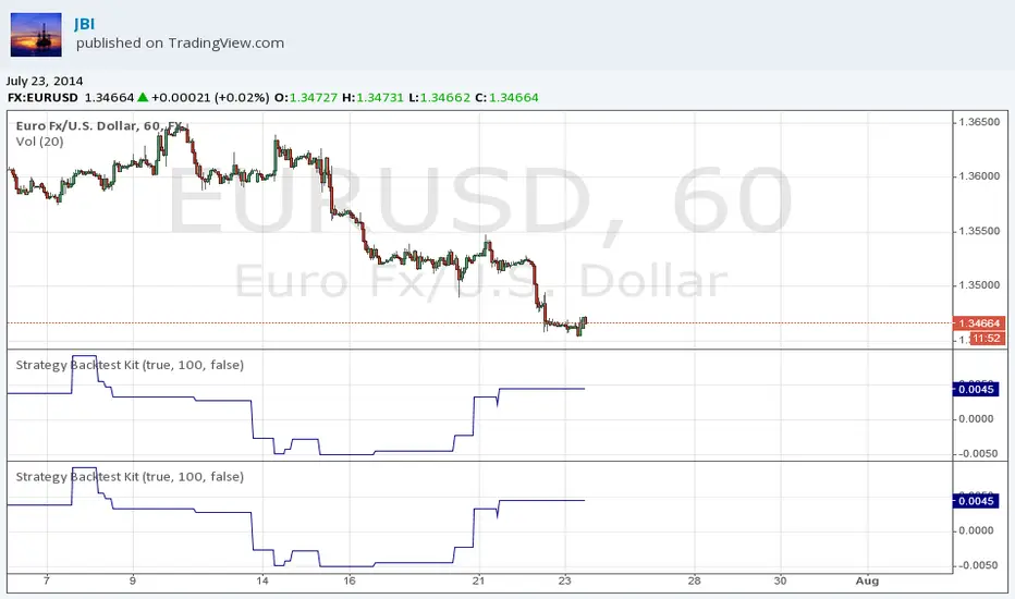 Strategy Backtest Kit. You have just to define your own entry / exit setups. The strategy I have coded into this is : BUY when MACD > 0 / SELL when MACD < 0. Always in position.