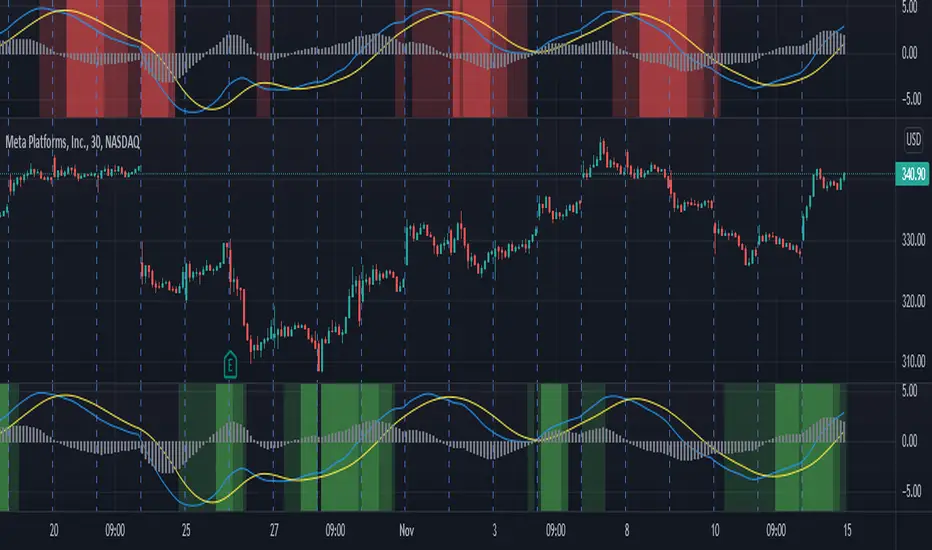 filtered(primary, secondary, len, stdlen, stdMultiple) Compares two series for changes in momentum to derive signal values. Uses statistics to filter out changes in momentum.